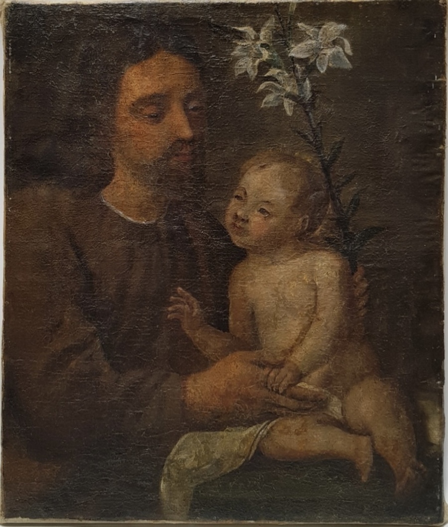 Schilderij olieverf op doek, Jozef met kindeke Jezus, circa 1700.