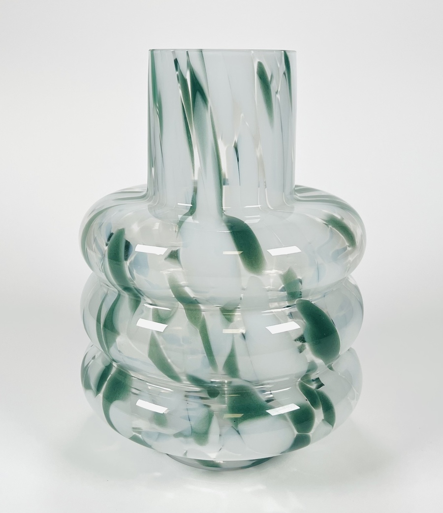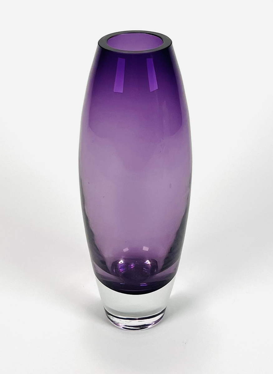 Paarse kegelvormige glazen vaas in Sommerso techniek, vierde kwart 20e eeuw.