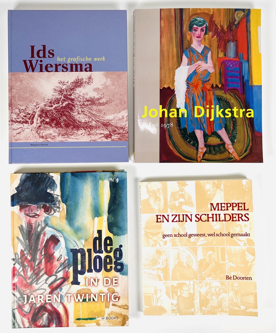 Vier kunstboeken met betrekking tot de schilderkunst in de Noordelijke regio met uitgaven over Ids Wiersma, Johan Dijkstra, de Ploeg in de jaren 20 en Meppel en zijn schilders. Vierde kwart 20e eeuw.