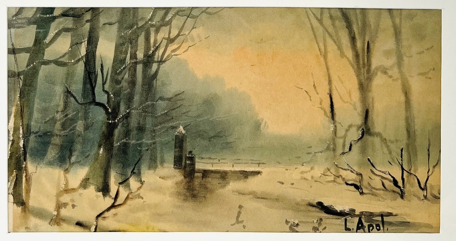 Aquarel van een winterlandschap met brug naar Louis Apol, 20e eeuw.