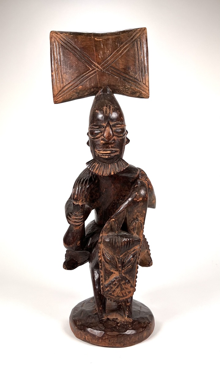 Houtgestoken tribaal beeld van een Yoruba krijger. Nigeria, 20e eeuw.