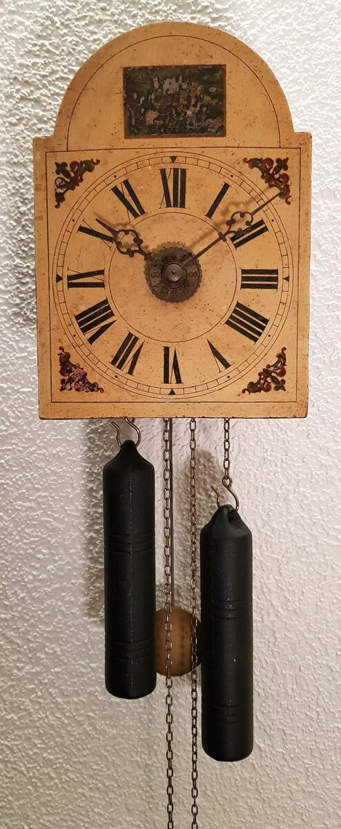 Duitse appelklok met handbeschilderde wijzerplaat, eerste helft 20ste eeuw.