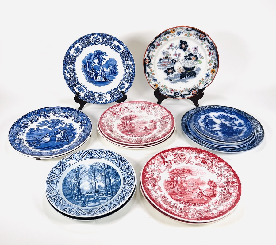 Zestien porseleinen borden waaronder Petrus Regout Maastricht. 20e eeuw.