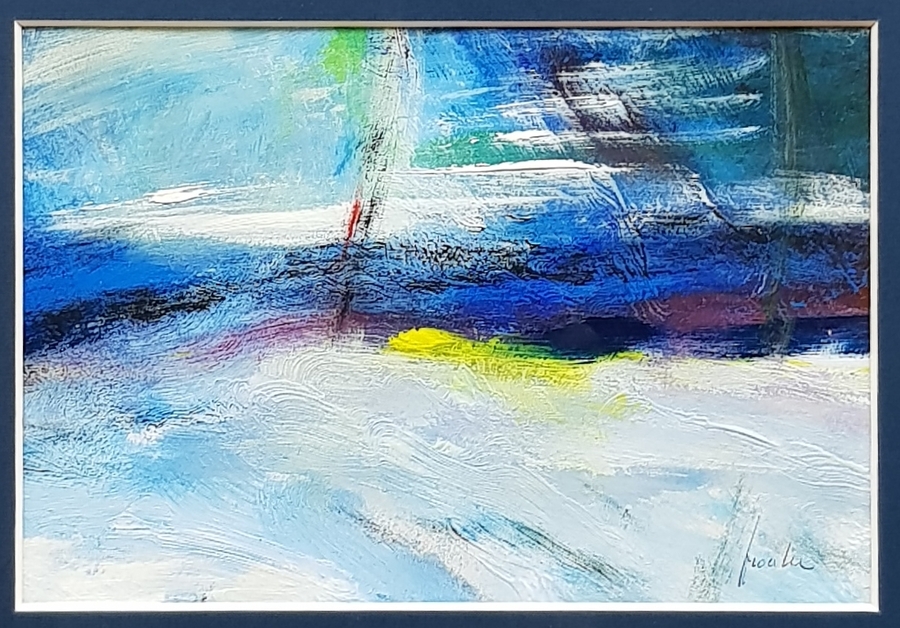 Modernistisch abstract schilderij, acrylverf op papier. Rechtsonder gesigneerd, jaren 90.