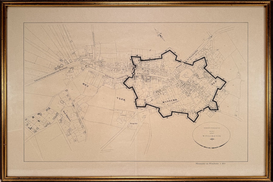 Kadastrale kaart van Winschoten getiteld “Minuutplan van Winschoten plusminus 1823”. Facsimile druk, 20e eeuw.