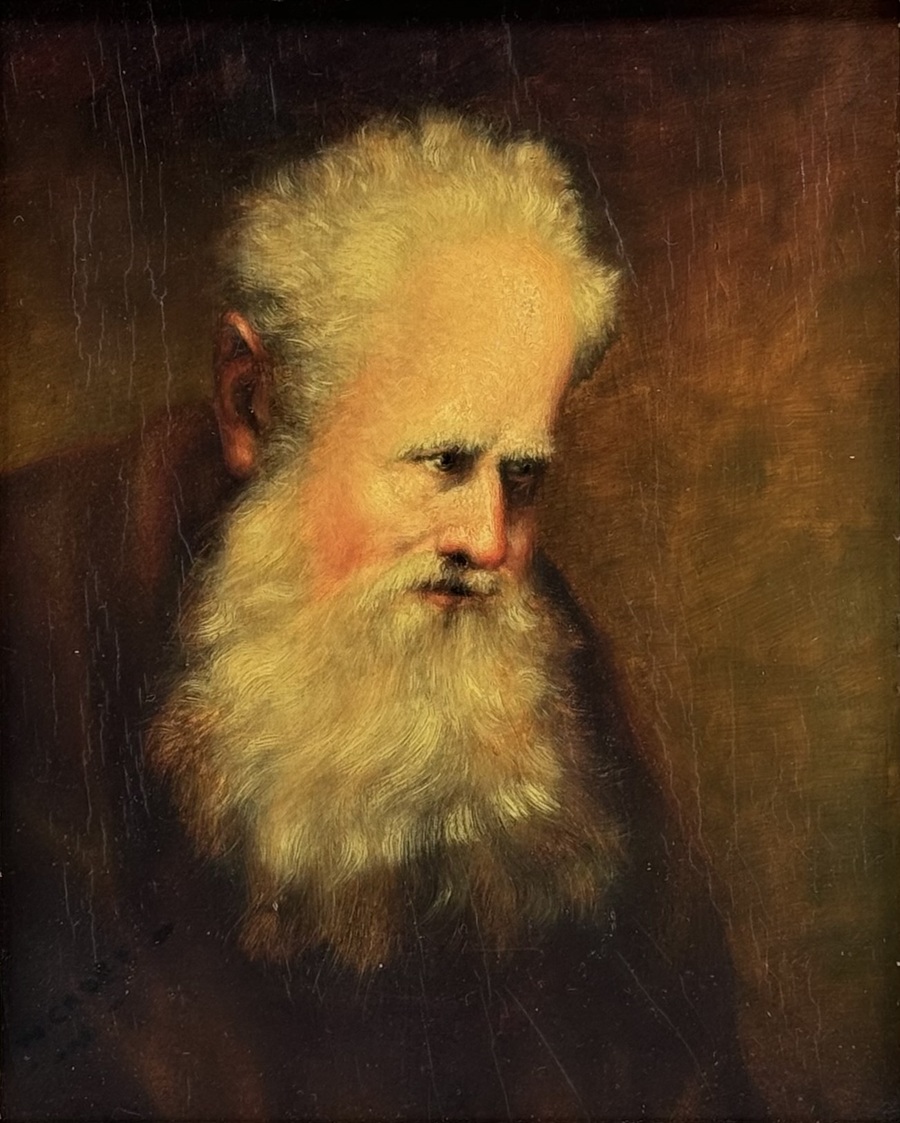 Schilderij met portret van Petrus door Wim Cadee (1875-1956), olieverfschilderij op paneel. Linksonder gesigneerd, verso extra documentatie. Eerste helft 20e eeuw.