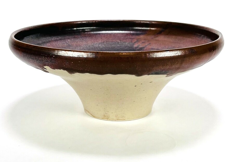 Aardewerken trechtervormige schaal aan de binnenzijde bruin geglazuurd door Gerrit Spijker (Zuidlaren). Aan de onderzijde gemerkt, eind 20e eeuw.