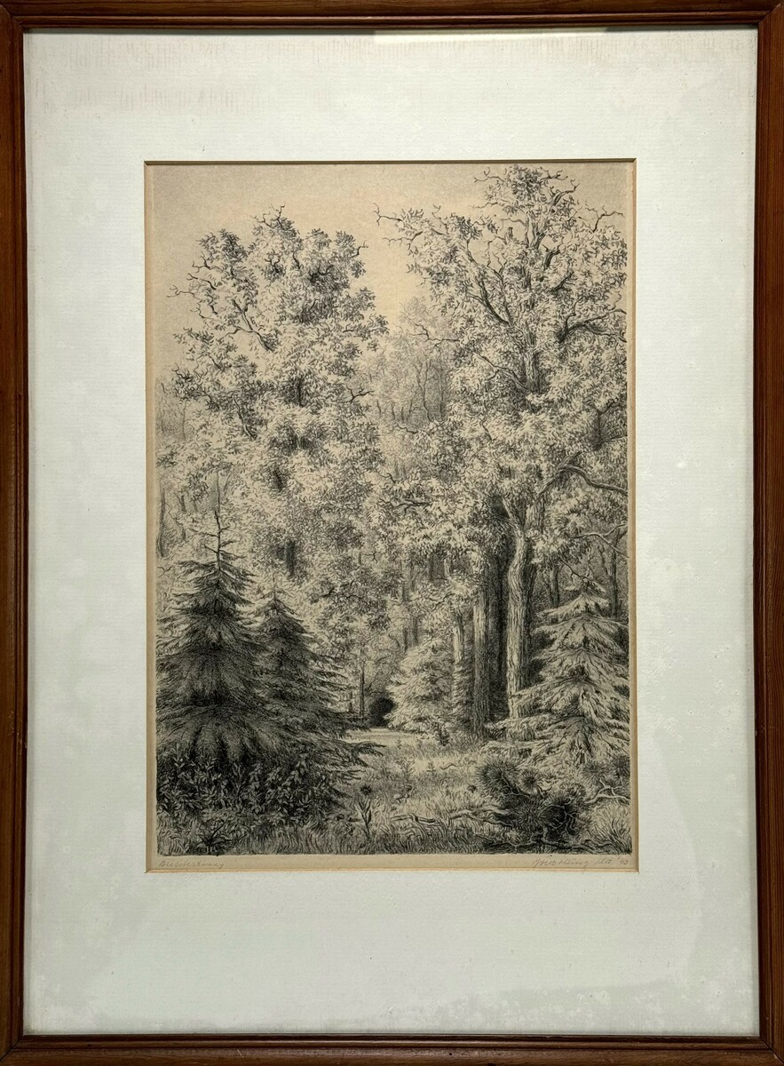 Lithografie getiteld “Beesterzwaag” door Johan Herman Bolling (1918-1997). Rechtsonder met potlood gesigneerd en gedateerd 1943.