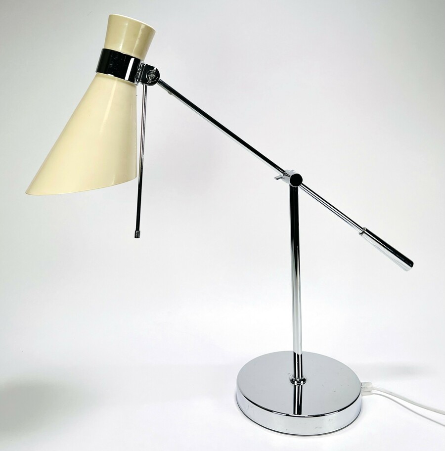 Metalen bureaulamp met verchroomde lampenvoet en montuur door Nordlux (Denemarken), modelnummer 7340. Gefabriceerd in 2007.