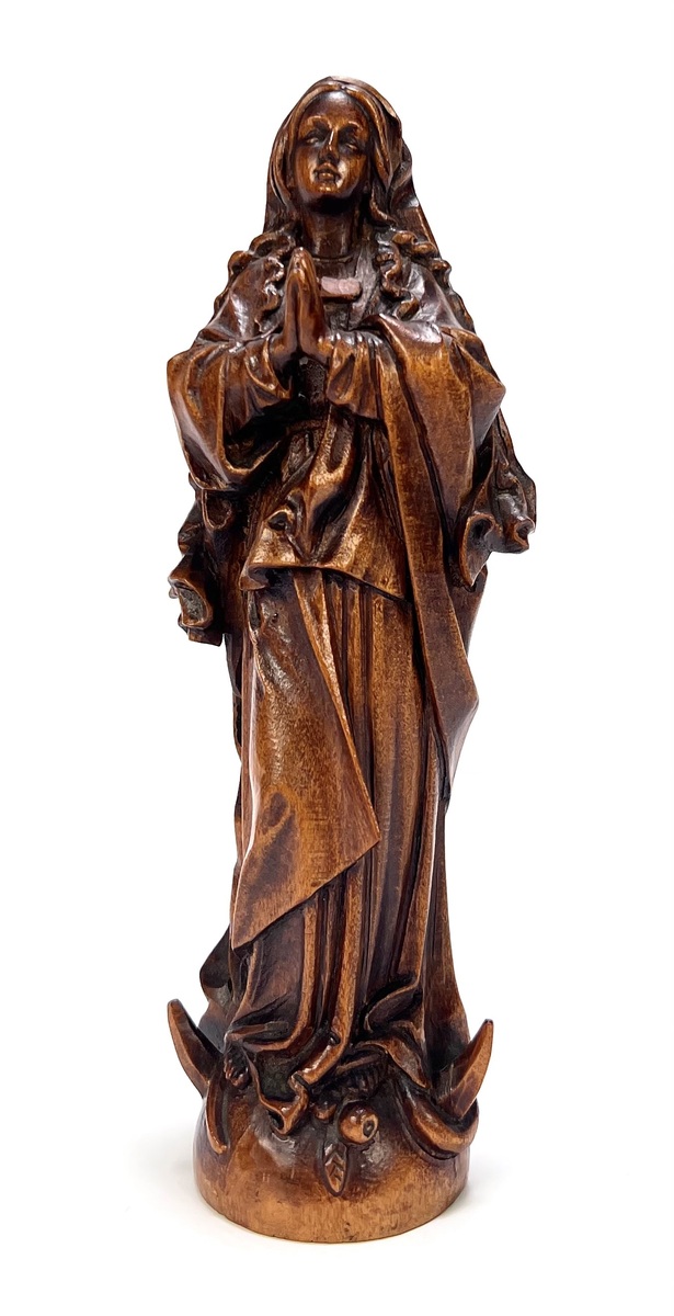 Uit fruithouten gestoken beeld van de Heilige Maagd Maria, omstreeks 1900.