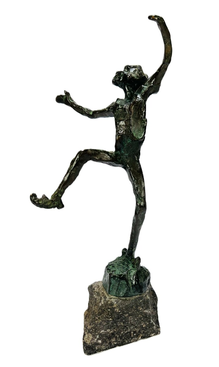 Bronzen beeld van clown op granieten basement. Toegeschreven aan Jits Bakker, eind 20e eeuw.
