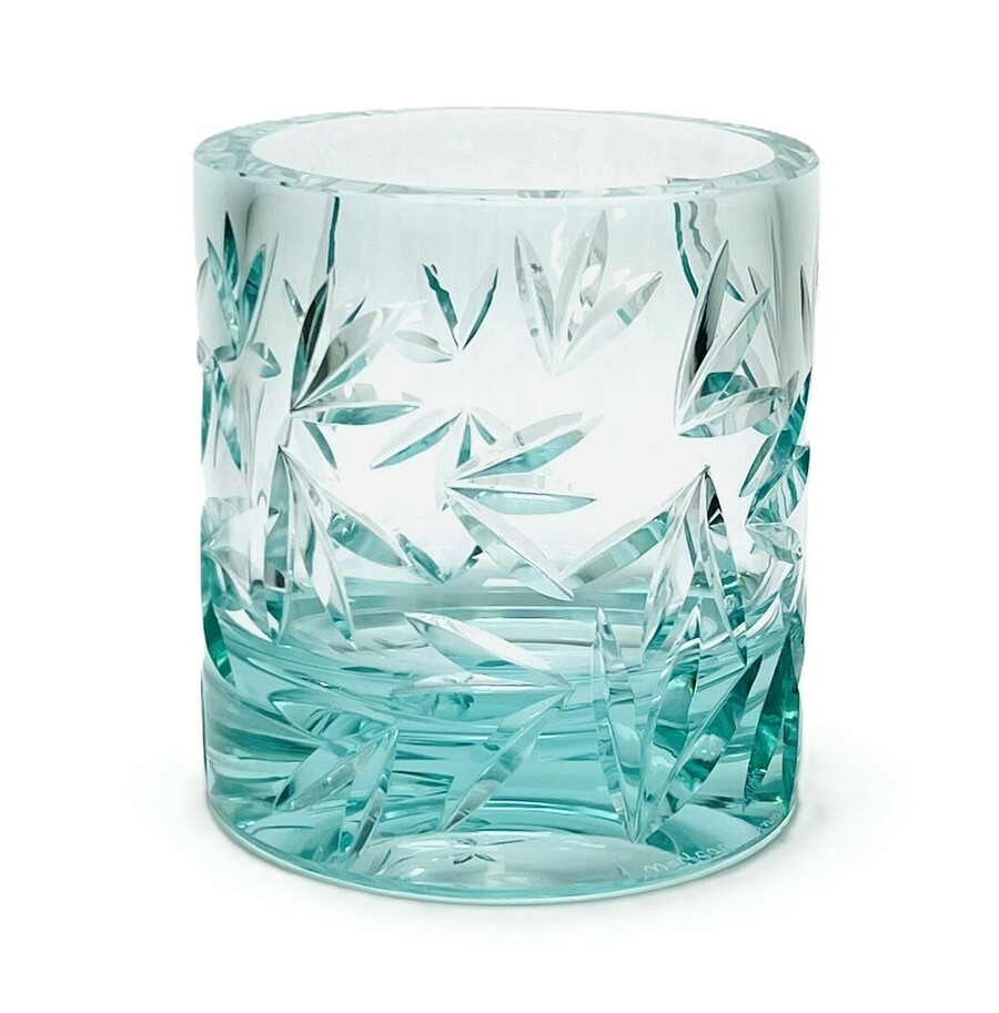Kristallen zeeblauwe unica vaas met geslepen decor naar ontwerp van Veronica Wolferova. Aan de onderzijde gesigneerd, uitgevoerd door glasfabriek in Kamenicky Senov. Tsjechië, 21e eeuw.