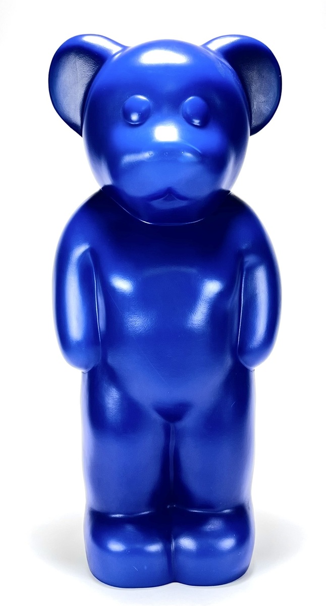 Donkerblauwe kunststoffen lamp in de vorm van een beer, modelnaam Lumibär. Ontwerp Elmar Flötotto en uitgevoerd door Flonsotto. Made in Germany,1997.