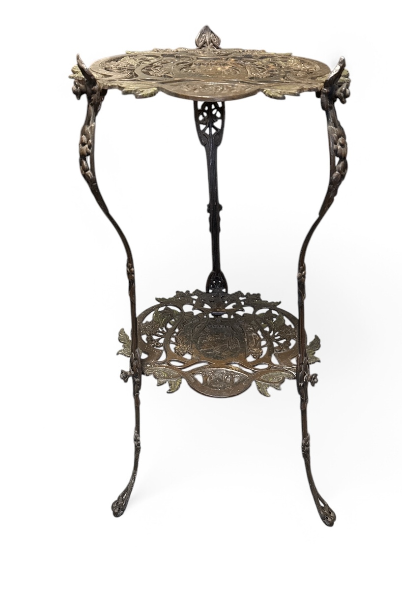 Jugendstil messing plantentafel met twee niveaus gedecoreerd met florale motieven. Omstreeks 1900.