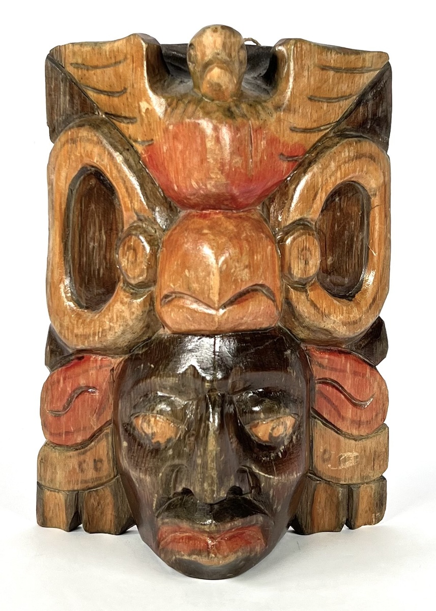Houten wandmasker in Mexicaanse stijl. 2e helft 20ste eeuw.