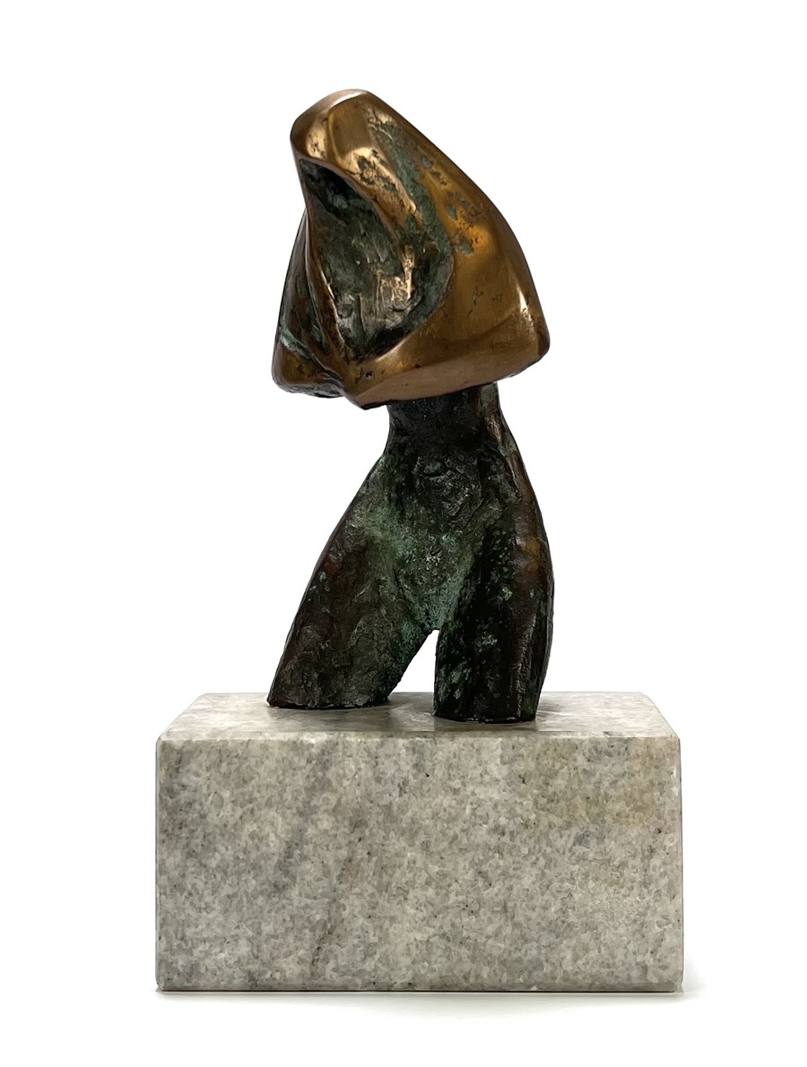 Bronzen, deels groen gepatineerd beeld van gestileerd vrouwelijk naakt door Jos van Dormolen (1926-2011), ongesigneerd, vierde kwart 20e eeuw.