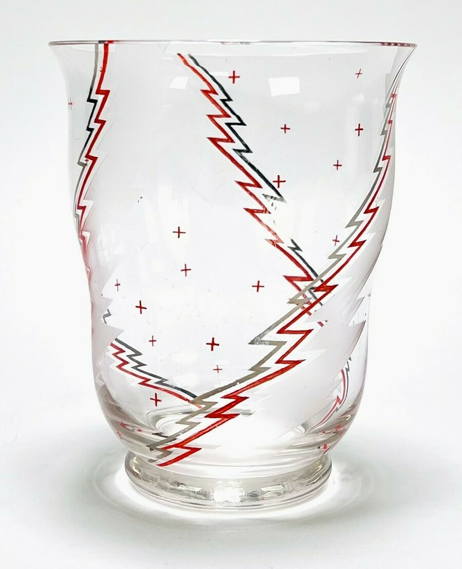 Art Deco kristallen vaas met bliksemschicht motief. Tsjechoslowakije, jaren 30.