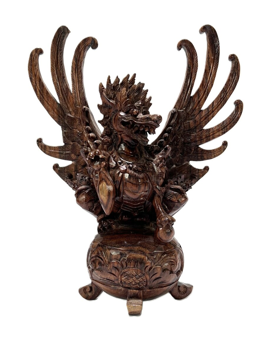 Palissanderhouten Balinees gestoken beeld van Singa Barong, de huilende leeuw. Indonesië, midden 20e eeuw.