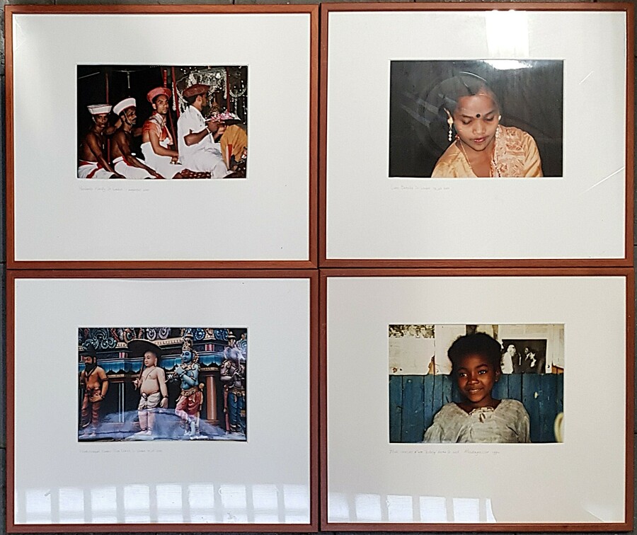 Vier foto's van diverse personen en een heiligdom. 20ste eeuw.