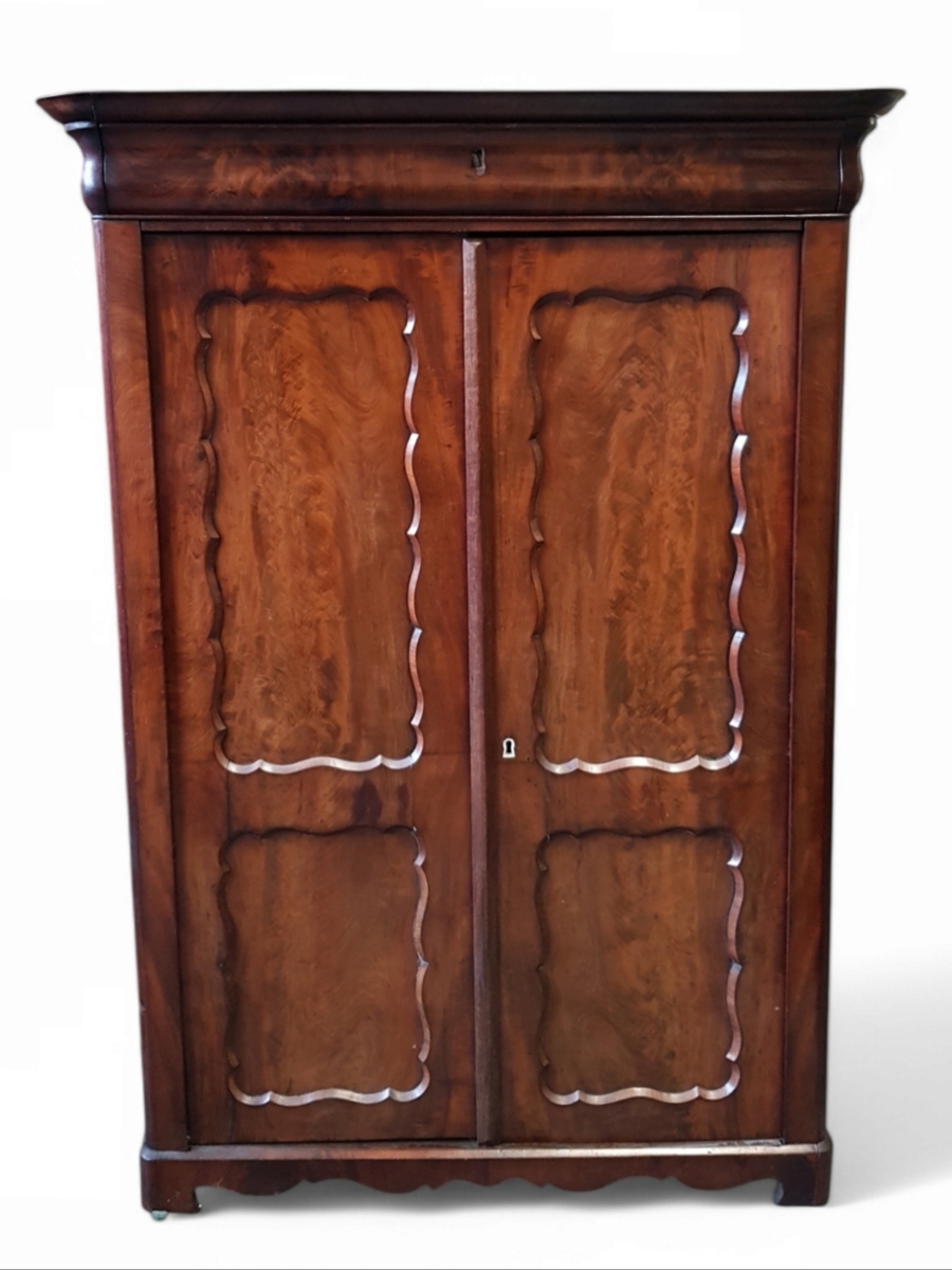 Mahoniehouten meidenkast met legplanken en lade. Eind 19e eeuw.