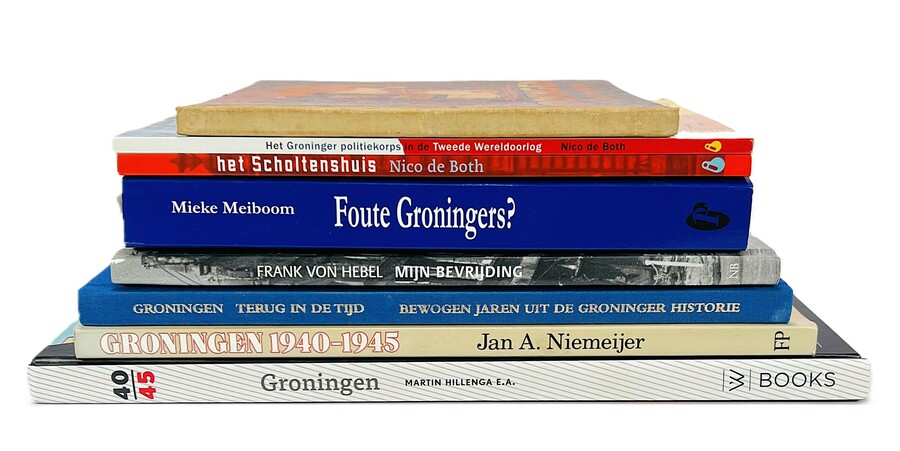 Convoluut van acht boeken over Groningen waaronder Groningen in vuur en puin, Het Scholtenhuis en foute Groningers? 20e eeuw.