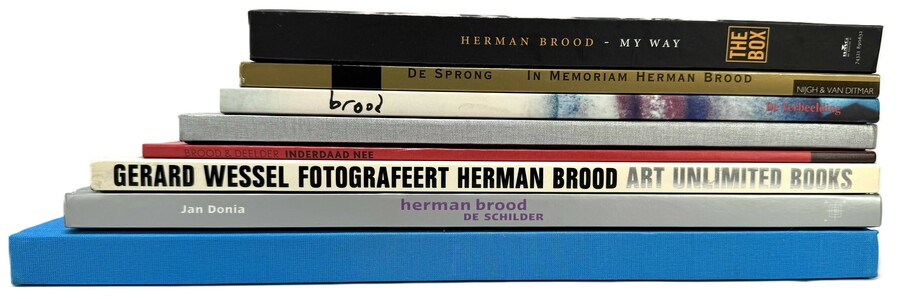 Convoluut van acht boeken over Herman Brood met onder andere The Box Herman Brood met twee cd’s, Woedend Licht, Herman Brood De Schilder, Brood & Deelder Inderdaad Nee en Herman Brood door Corbijn. Eind 20e eeuw, begin 21e eeuw.