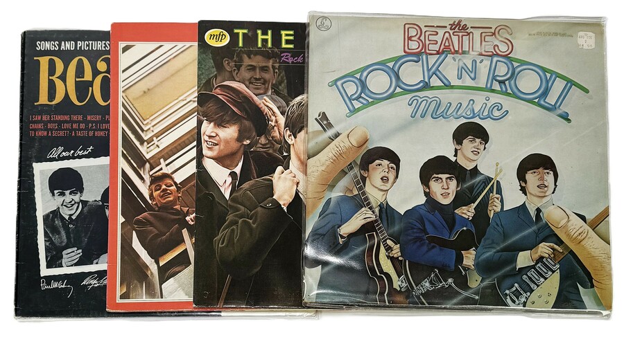 Vier elpees van The Beatles; twee dubbelalbums “Rock ‘n’ Roll Music” en The Red album (1962-1966), jaren 70. “Songs and pictures of The fabulous Beatles” en “Rock ‘n’ Roll Music Volume 1” uit 1976.