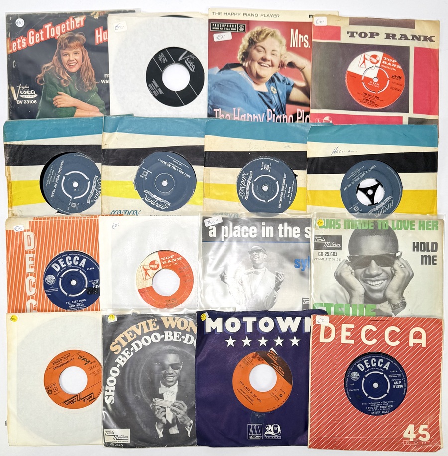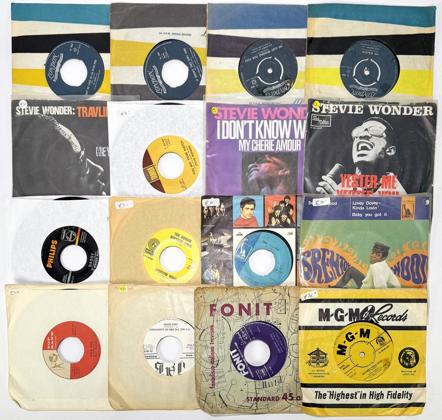 Zestien 45 toeren singles waaronder Brenton Wood, Fats Domino, Stevie Winder en Jack Wood. Jaren 60/70.