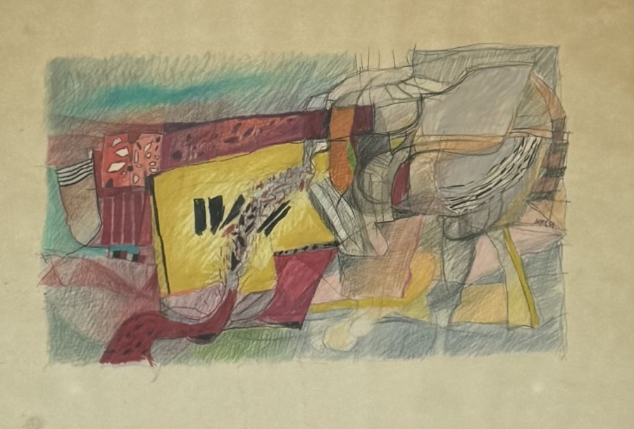 Tekening met polychrome compositie door architect M.M.J. (Marc) van der Linden. Rechts midden gemonogrammeerd en gedateerd 1991.