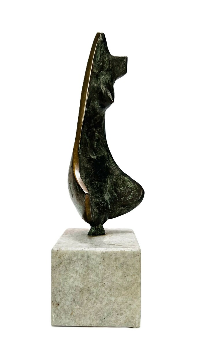 Bronzen, deels groen gepatineerd beeld van gestileerd vrouwelijk naakt door Jos van Dormolen (1926-2011), ongesigneerd, vierde kwart 20e eeuw.