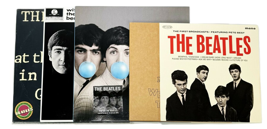 Vijf elpees van The Beatles,; het dubbelalbum “Live!! At The Star-Club in Hamburg 1962” uit 1977, gelimiteerde uitgave “Pop go The Beatles”, “With The Beatles” en The First Broadcasts”, 21e eeuw en een picture disc “We all stand together” van Paul McCartney uit 2020.