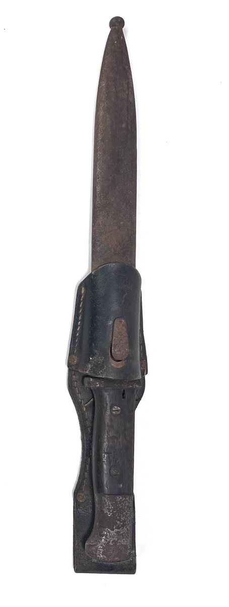 Bajonet K98 Solingen met lederen koppel met naam van de maker P. Weyersberg. Duitsland, productie tussen 1937 en 1940.