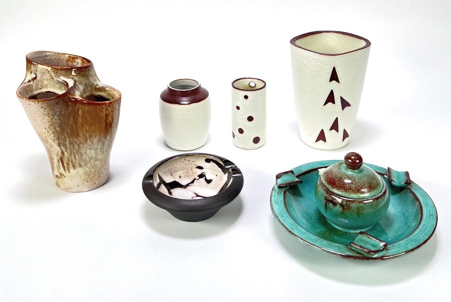 Convoluut keramiek met onder meer Ravelli, Mobach en Westraven. Onderzijde gemerkt, 20ste eeuw.
