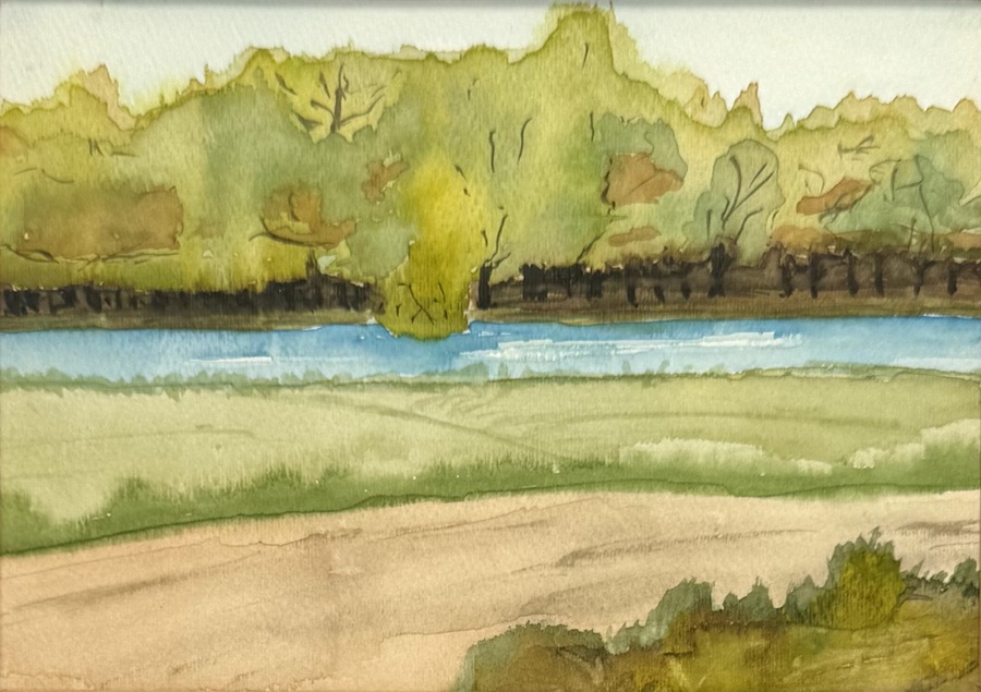 129. Aquarel, rivierlandschap, midden 20e eeuw