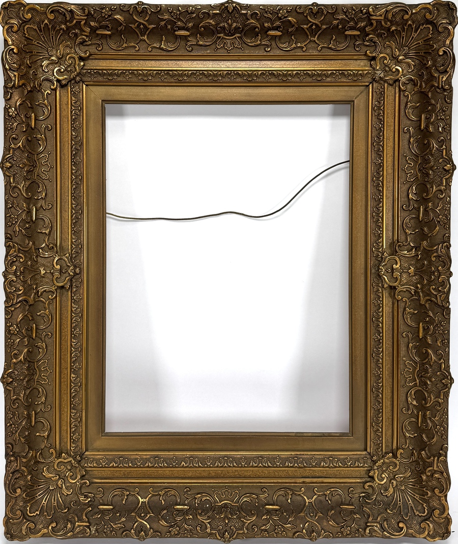 Schilderijlijst, eerste helft 20e eeuw, vervaardigd uit hout met gipsopbouw. De lijst is uitgevoerd in barok geïnspireerde stijl met rijke ornamentiek waaronder schelp- en bloemmotieven, aangevuld met krullen en rocaille-details.