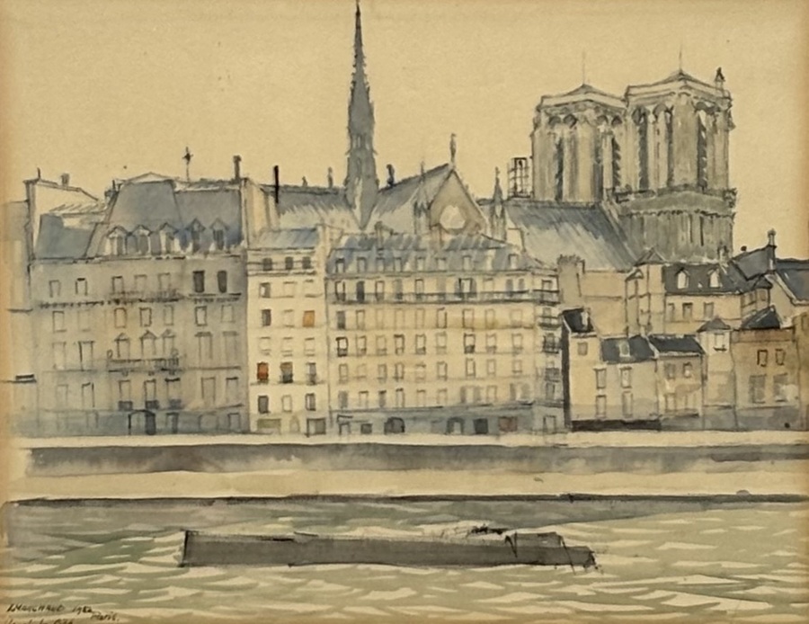 230. Aquarel, L. Marchand – Île de la Cité Parijs, 1954
