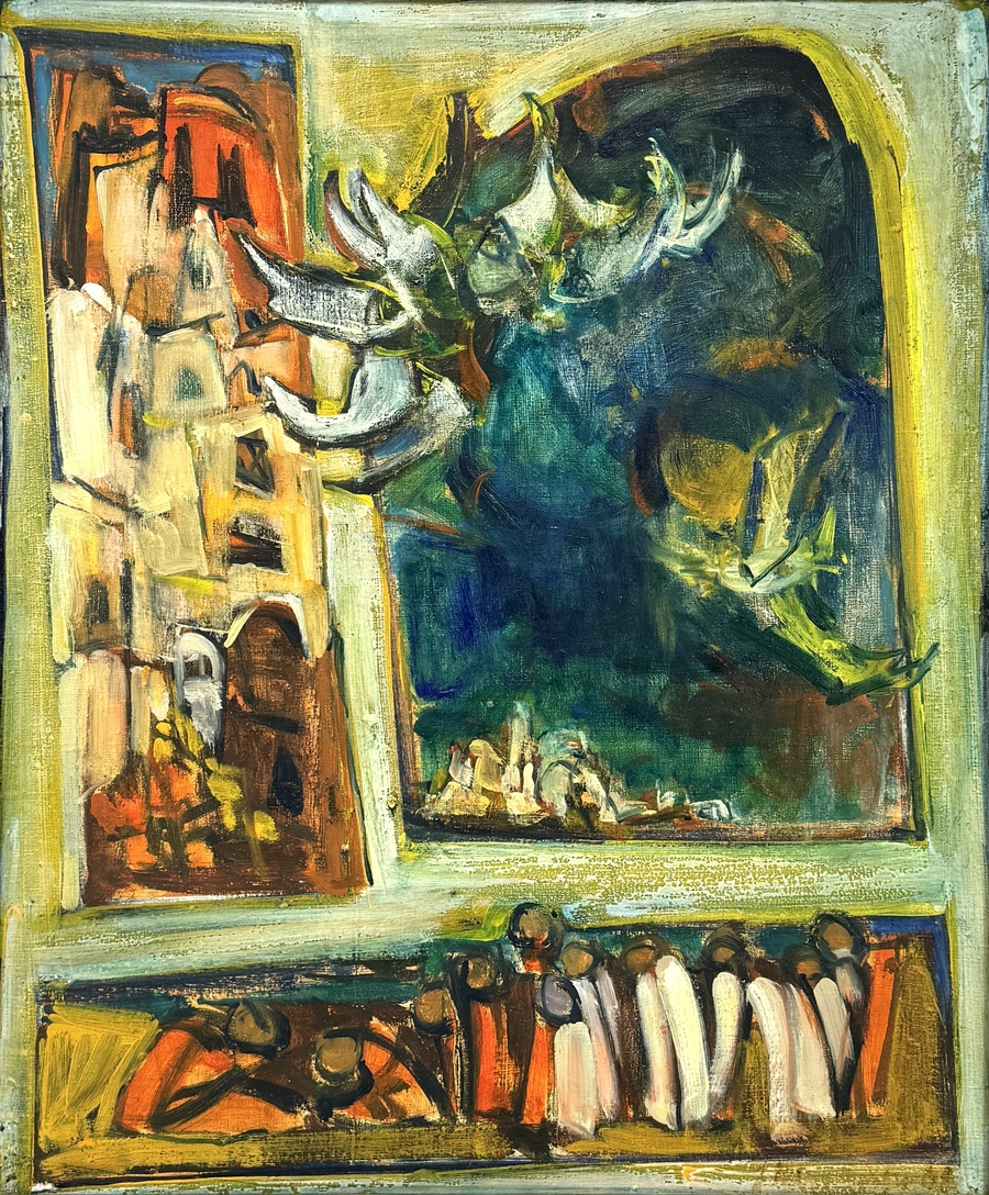 644. Olieverfschilderij, midden 20e eeuw – expressionistische compositie
