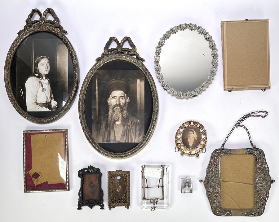 Verzameling van elf fotolijstjes vervaardigd in de eerste helft van de 20e eeuw, van messing, koper, glas en hout. De fotolijstjes zijn ovaal en rechthoekige van vorm met strik- en florale ornamentiek, geperst en gegoten metaalwerk.