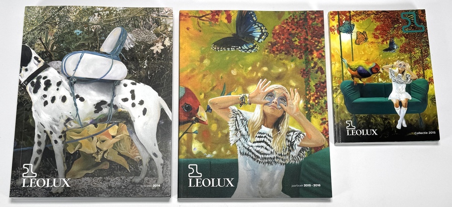Drie gedrukte jaarboeken van de Nederlandse design fabrikant Leolux, daterend uit de periode 2014–2016. De boeken over hedendaags design zijn uitgevoerd in offsetdruk op papier met softcover, onder andere interviews met ontwerper Gerard Vollenbroek.