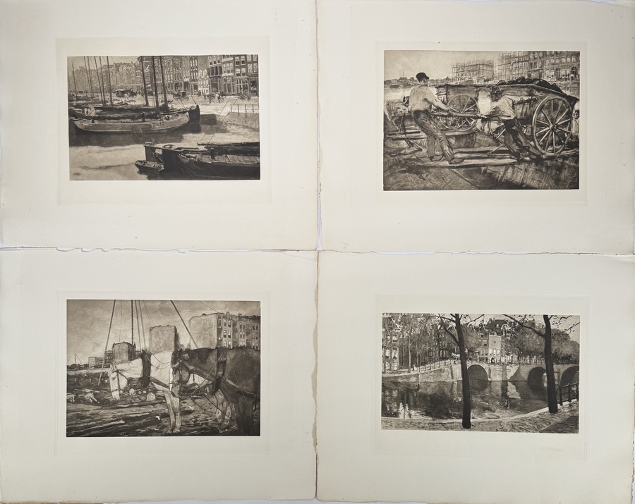 Reeks van vijftien fotogravures op papier naar werken van George Hendrik Breitner (1857–1923), gedrukt in sepiabruine tonen, begin 20e eeuw. De realistisch-impressionistische voorstellingen tonen cavalerie, werkpaarden, haven- en stadsgezichten in karakteristieke Amsterdamse sfeer. Uitgegeven als portfolio, uitgave door een Nederlandse uitgever rond 1910.