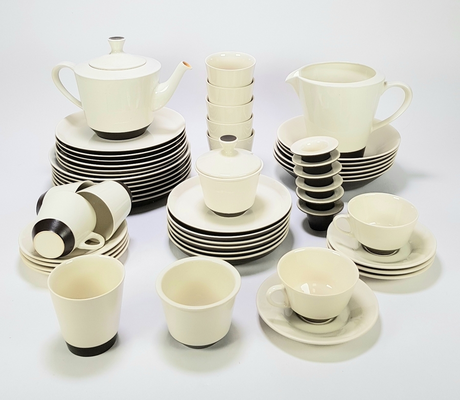 Servies ontworpen door Willem de Vries (1908–1977) voor Fris Holland. Het keramiek uit 1958 bestaat onder andere uit kop-en-schotels, theepot en bekers. Het servies is wit geglazuurd met contrasterende donkerbruine banden.