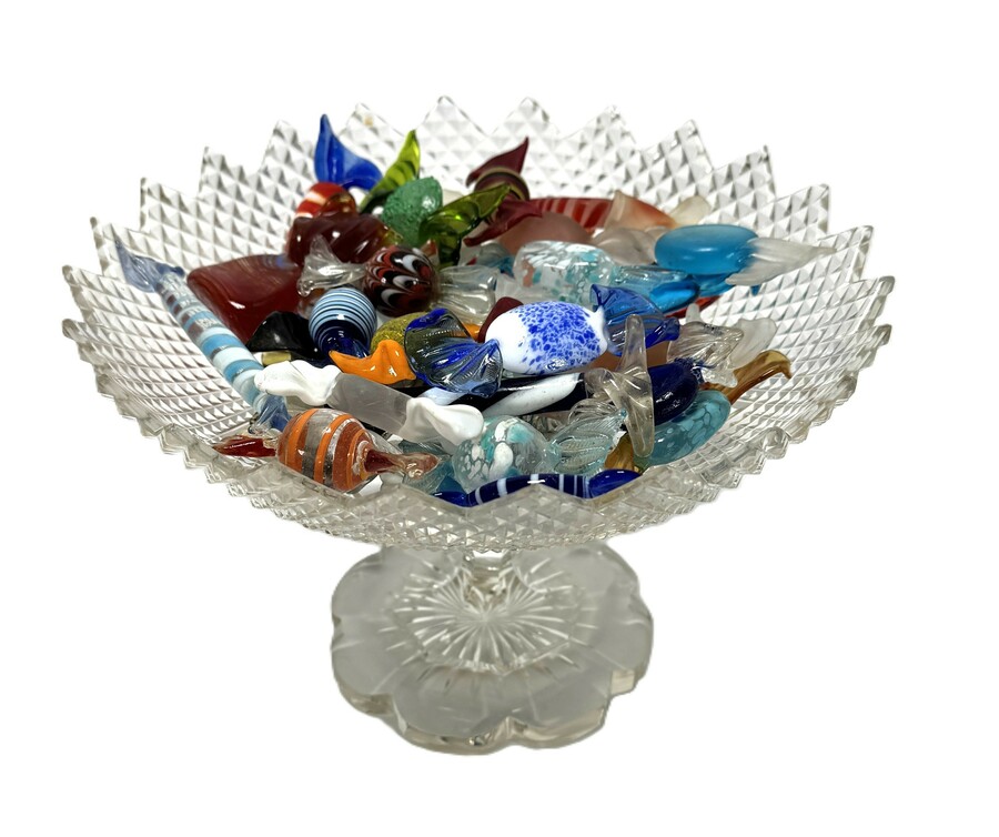1458. Kristallen schaal met glazen snoepjes, 20e eeuw