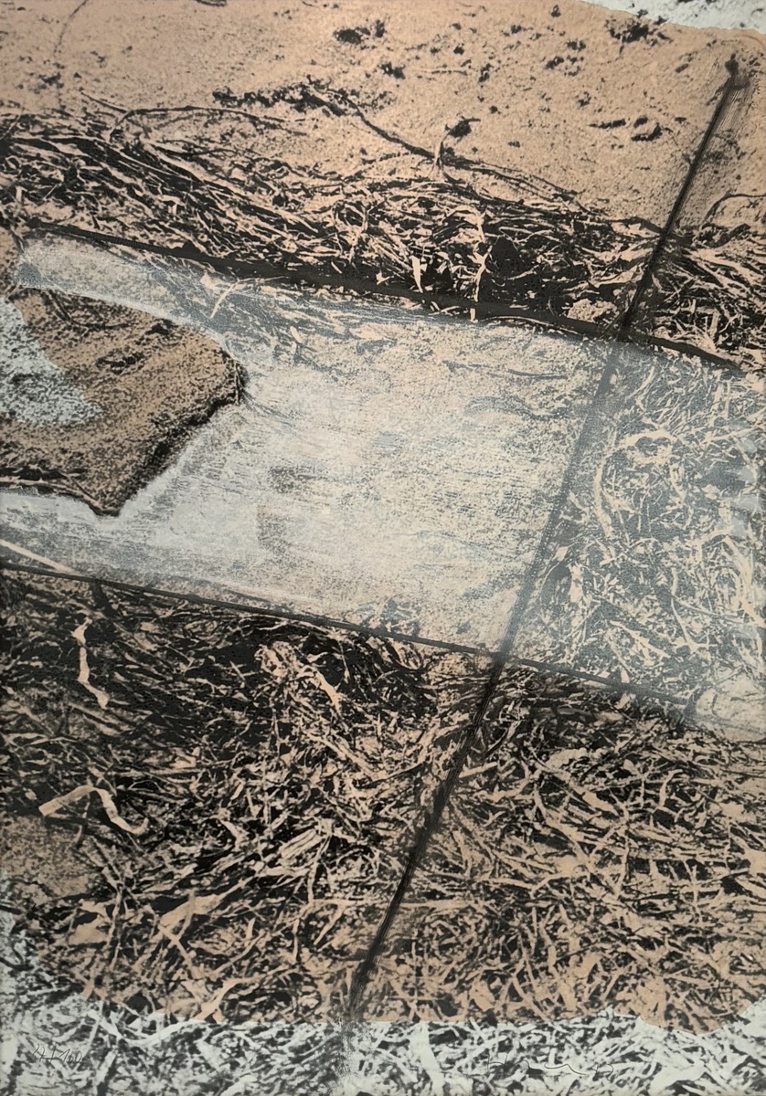 Fotolitho op papier door Edgar Hofschen (1941–2016), daterend uit 1972 en gedrukt in een oplage van 160 exemplaren, waarvan dit nummer 37 betreft. Het werk toont een abstracte compositie met fotografische structuren en contrasterende vlakken in zwart en beige, typerend voor de constructivistische stijl van de kunstenaar. De litho bevindt zich in een houten lijst.