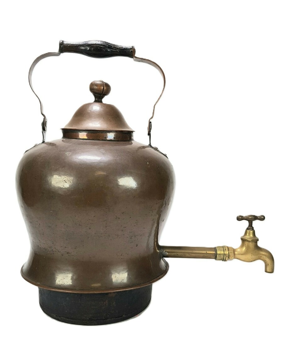 163. Koperen theeketel met messing kraan, tweede helft 19e eeuw