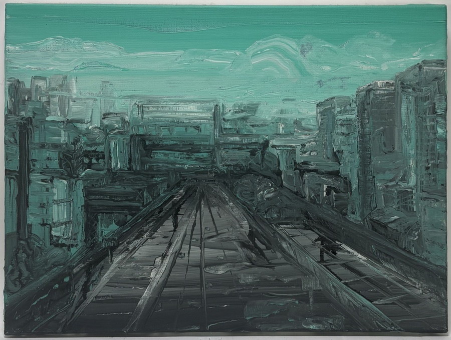 175. Gemengde techniek, Edwin Jans – stedelijk landschap met rails, 2010