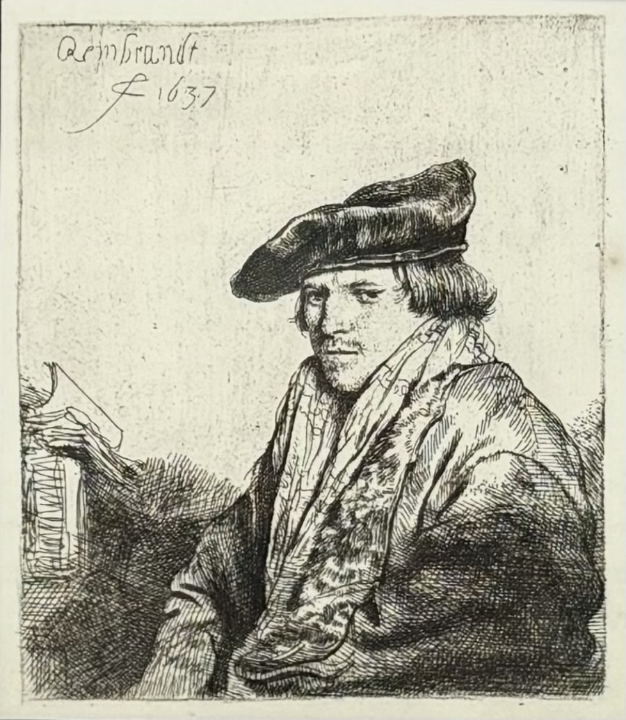 16. Ets, Rembrandt van Rijn - "Jonge man met fluwelen baret", 1840/1850