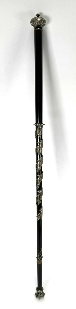 Dirigeerstok uit de Victoriaanse periode, vervaardigd uit ebbenhout met gedreven zilveren beslag. De baton is bekroond met een rijk gedecoreerde zilveren knop en een spiraalvormige banderole met de inscriptie "Flower Queen May 1st 1895". Aan de onderzijde bevindt zich een zilveren rozetapplicatie. De dirigeerstok dateert uit het jaar 1895 en heeft een herkomst in de Engels-Saksische traditie.