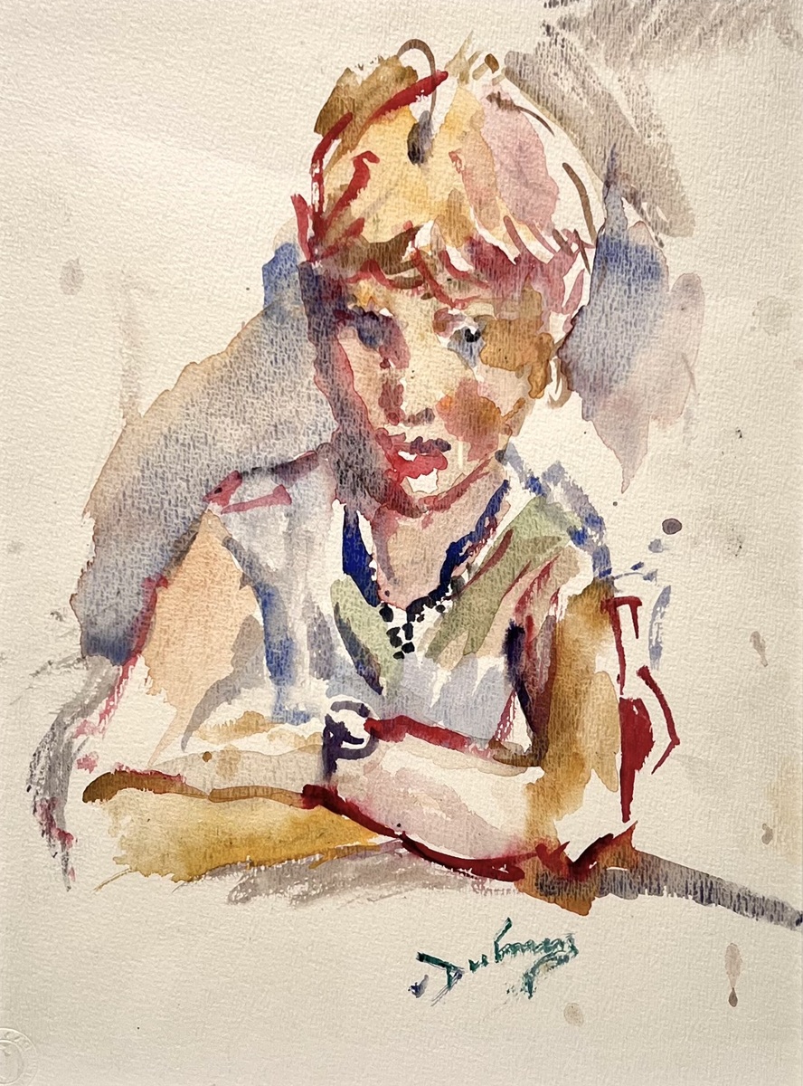 520. Aquarel, E.B. van Dulmen Krumpelman - portret, ca. 1960