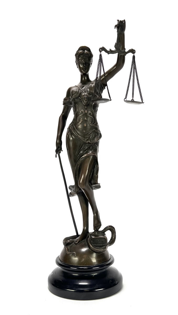 45. Bronzen beeld naar Alois Mayer - Vrouwe Justitia, Frankrijk, 20e eeuw