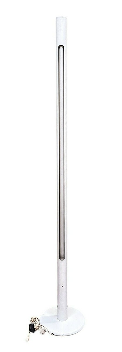 Lamp in Mid-century modern stijl, vervaardigd uit metaal en kunststof met industrieel toegepaste assemblagetechniek. Uitgevoerd als staande tube light met slanke cilindrische staander en een verticale lichtopening over vrijwel de volledige hoogte. De ronde, schijfvormige voet ondersteunt het minimalistische ontwerp. De lamp dateert uit het midden van de 20e eeuw en heeft een West-Europese herkomst.